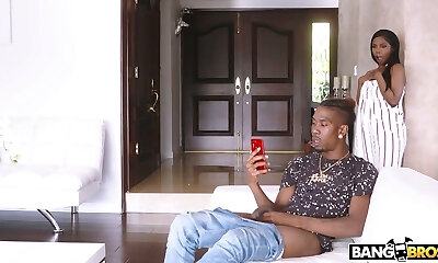 Hot ebony BBW Maseratti fucks horny black dude on the white couch