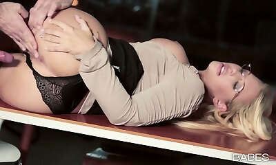 Wonderful bosomy blond secretary lets boss plumb her twat mish on table
